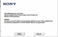 I'm trying to register my Vegas Movie Studio 6.0 purchase on a new machine and cannot get an Activation Code. Online registration fails with the message attached in the image below.