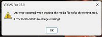 Problem Signature Problem Event Name: BEX64 Application Name: vegas220.exe Application Version: 22.0.0.250 Application Timestamp: 6810f141 Fault Module Name: nvoglv64.dll Fault Module Version: 32.0.15.8097 Fault Module Timestamp: 689517af Exception Offset: 0000000001081c6d Exception Code: c0000409 Exception Data: 0000000000000007 OS Version: 10.0.26100.2.0.0.256.48 Locale ID: 1046 Additional Information 1: 85f3 Additional Information 2: 85f3deb6df02b5d07b7107212f7df6c5 Additional Information 3: 6664 Additional Information 4: 666451cb58ac66534ef9a2d0a5b901efExtra Information about the Problem Memory Dump ID: 8abd6c70da614413ef224e8c79e9a6c1 (2243441929631672001)