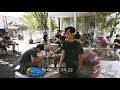 3 - Less green, but warm-boosted in mid-tones, while keep blue in high-tones. (reason: this is coffee shop - and involved food and coffee... felt if applying greenish color could lead to 'something else'....)